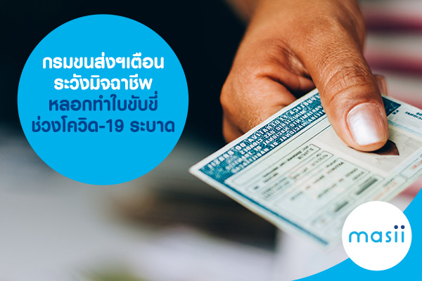 กรมขนส่งฯ เตือน ระวังมิจฉาชีพหลอกทำใบขับขี่ช่วงโควิด-19 ระบาด ใครที่ใบขับขี่หรือใบอนุญาตขับรถหมดอายุ และต้องการต่อใบขับขี่ หรือทำใบขับขี่ในช่วงนี้ โปรดระวัง อย่าหลงเชื่อผู้อื่นที่มาแอบอ้างอาสาดำเนินการด้านใบขับขี่ให้เด็ดขาด เพราะอาจถูกหลอกให้เสียเงินเปล่าๆ และเอกสารสำคัญอาจถูกนำไปใช้ในทางมิควรอีกด้วย ส่วนจะมีรายละเอียดอย่างไรนั้น ไปติดตามกับ masii กันเลยค่ะ