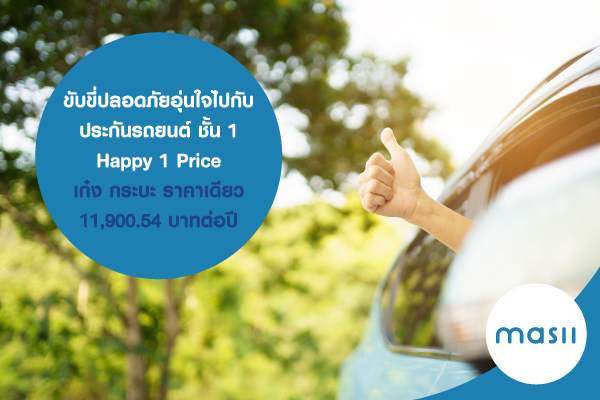 สำหรับใครที่กำลังมองหา ประกันภัยรถยนต์ ที่ให้ราคาดี และมีบริการหลังการซื้อที่ดีละก็ ตอนนี้ masii ต้องขอแนะนำ โปรโมชั่น ประกันภัยรถยนต์ ชั้น 1 ที่รับ ประกันภัยรถยนต์ ส่วนบุคคล (รถเก๋ง) รถกระบะ ที่เป็นราคาเดียวกัน ต่อปี กับแผนประกัน ประกันภัยรถยนต์ ชั้น 1 Happy 1 Priceราคาเดียว 11,900.54 บาท ต่อปี และ ยังไม่พอครับโปรโมชั่นนี้ ยังมีบริการพิเศษบนท้องถนนอีกด้วยครับ ซึ่งสำหรับรายละเอียดนั้นเรามาดูกัน