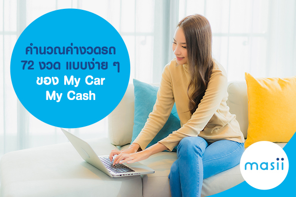 สนใจสมัครสินเชื่อรถแลกเงิน My Car My Cash เพื่อนำเงินก้อนมาใช้จ่าย แต่ไม่แน่ใจว่ารถยนต์ที่ใช้เป็นหลักทรัพย์สมัครสินเชื่อจะรับวงเงินอนุมัติ และต้องชำระค่างวดเท่าไร ดังนั้น Masii มีวิธี คำนวณค่างวดรถ 72 งวด เบื้องต้นของสินเชื่อรถ My Car My Cash มาฝาก
