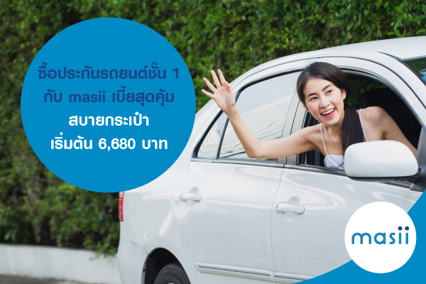 ซื้อประกันรถยนต์ชั้น 1 กับ masii เบี้ยสุดคุ้ม สบายกระเป๋า เริ่มต้น 6,680 บาท
