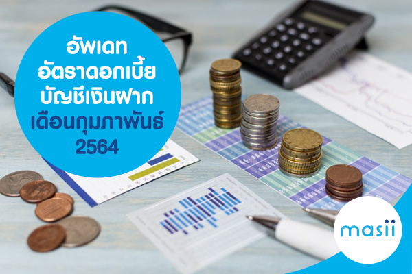 อัพเดทอัตราดอกเบี้ยบัญชีเงินฝาก เดือนกุมภาพันธ์ 2564