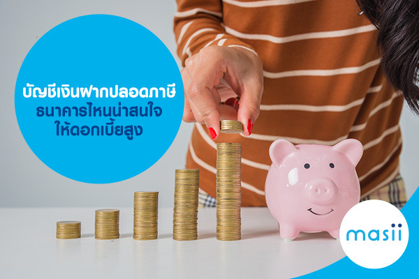 ออมเงิน สร้างความมั่นคงและเป็นเงินทุนสำรองให้กับอนาคตด้วยการเปิดบัญชีธนาคาร ซึ่งดอกเบี้ยเงินฝากที่ได้รับหากมียอดเกิน 20,000 บาท จะต้องถูกหักภาษี ณ ที่จ่าย 15% ดังนั้น Masii แนะนำ บัญชีเงินฝากปลอดภาษี ได้ดอกเบี้ยสูง ซึ่งจะมีธนาคารไหนน่าสนใจ ไปดูรายละเอียดกันเลย