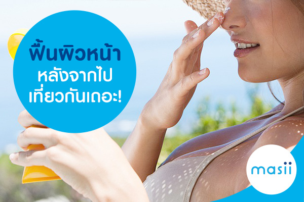 ในช่วง Summer แบบนี้ ใคร ๆ ก็อยากจะไปเที่ยวทะเลหนีร้อนกันทั้งนั้น ไม่ว่าจะไปเที่ยวตามเกาะทะเลทางใต้ หรือจะไปเที่ยวทะเลใกล้ ๆ อย่างระยอง เกาะล้าน เป็นต้น แน่นอนว่าแดดบ้านเรานั้นไม่ธรรมดาเลยแหละ เหมือนอยู่ใกล้ดวงอาทิตย์แค่กิโลเดียว แค่เดินออกจากบ้านก็แสบผิวแล้ว และสำหรับใครที่ไปเที่ยวคลายร้อนกันมา วันนี้ masii ก็จะเอาเคล็ดลับฟื้นผิววหน้าหลังจากที่เราไปเที่ยวกันมากระซิบบอกเพื่อน ๆ ไปดูกันเลย