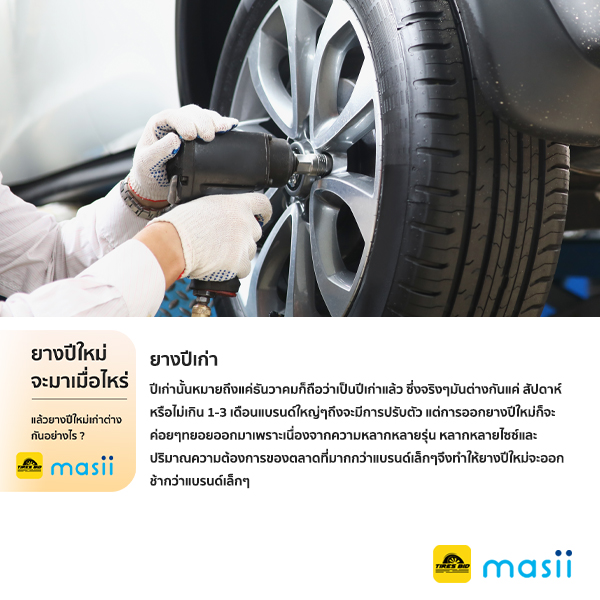 ซึ่งปีเก่านั้นหมายถึงแค่ธันวาคมก็ถือว่าเป็นปีเก่าแล้วนะครับ ซึ่งจริงๆมันต่างกันแค่ สัปดาห์ หรือไม่เกิน 1-3 เดือนเองครับถือว่าได้ของใหม่ราคาถูกก็เป็นไปได้ครับ(อันนี้พูดถึงเฉพาะแบรนด์เล็กนะครับ) แต่แบรนด์ใหญ่ๆถึงจะมีการปรับตัว แต่การออกยางปีใหม่ก็จะค่อยๆทยอยออกมาเพราะเนื่องจากความหลากหลายรุ่น หลากหลายไซส์ และปริมาณความต้องการของตลาดที่มากกว่าแบรนด์เล็กๆครับ ซึ่งแบรนด์ใหญ่ๆก็จะค่อยๆทยอยผลิตเป็นไซส์ๆ เป็นลายดอกยางไปครับ จึงทำให้ยางปีใหม่จะออกช้ากว่าแบรนด์เล็กๆครับ