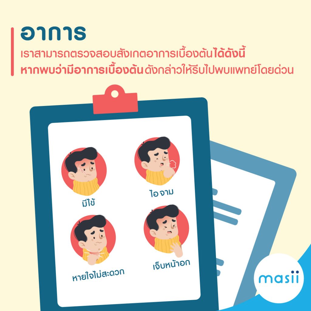 สำหรับอาการเบื้องต้นนั้นหากเราไม่ได้ทันสังเกตอาจจะอาการคล้ายกับไข้หวัดธรรมดาทั่วไป โดยหลักๆ หากเพื่อนๆ พบเจอว่าเรามีอาการเบื้องต้นติดต่อกันนานสูงสุดถึง 7-14 วันดังต่อไปนี้ ทาง masii แนะนำให้รีบไปพบแพทย์โดยทันที