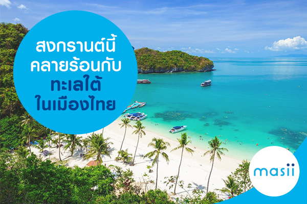เทศกาลสงกรานต์ก็เดินทางใกล้เข้ามาถึงแล้ว เพื่อน ๆ ได้วางแผนไปเที่ยวไหนกันรึยังจ๊ะ? แต่แหม อากาศร้อน ๆ แบบบ้านเรานั้น วันหยุดยาวทั้งทีก็อยากจะไปหาที่เย็น ๆ คลายร้อนกันใช่มั้ยล่ะ จะเป็นอะไรไปไม่ได้เลย นอกจากเราจะไปเที่ยวทะเล แช่น้ำให้สดชื่นหายร้อนกันไปเลย แต่วันหยุดยาวทั้งที จะไปทะเลใกล้ ๆ ก็ไม่น่าจะใช่ วันนี้ masii เลยจะพาเพื่อน ๆ ไปคลายร้อนกับทะเลใต้ในเมืองไทย อย่ารอช้า ตามมาเลย!