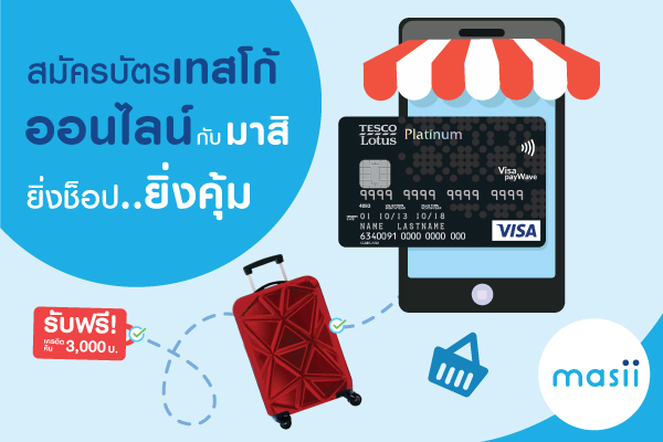 เพียงสมัครบัตรเครดิตบัตรเครดิตเทสโก้ โลตัส วีซ่า แพลทินัมหรือบัตรเครดิตเทสโก้ โลตัส วีซ่า ภายในวันที่ 1 มิ.ย. – 31 ส.ค. ก็สามารถรับเครดิตเงินคืน 1,000 บาท หรือ กระเป๋าเดินทาง iRed (มูลค่า 4,490 บาท) ได้เลย