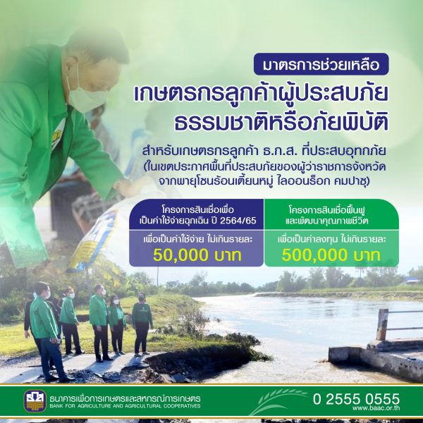 หากใครสนใจ สามารถสอบถามรายละเอียดเพิ่มเติมโทร Call Center 02-5550555 หรือติดต่อขอรับความช่วยเหลือได้ที่ ธ.ก.ส. ทุกสาขา
