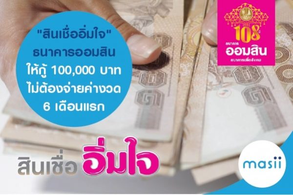 “สินเชื่ออิ่มใจ” ธนาคารออมสิน ให้กู้ 100,000 บาท ไม่ต้องจ่ายค่างวด 6 เดือนแรก
