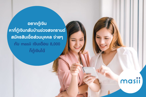 อยากกู้เงิน หาที่กู้เงินกลับบ้านช่วงสงกรานต์ สมัครสินเชื่อส่วนบุคคล ง่ายๆ กับ masii เงินเดือน 8,000 ก็กู้เงินได้