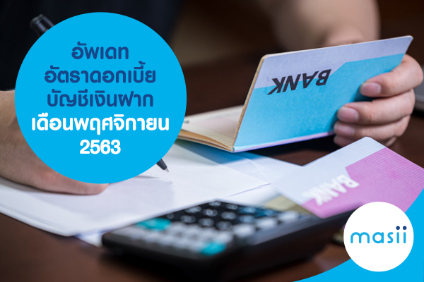 อัพเดทอัตราดอกเบี้ยบัญชีเงินฝาก เดือนพฤศจิกายน 2563