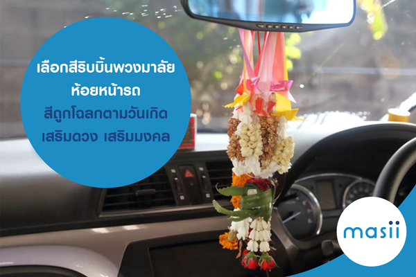 หากพูดถึง ความเชื่อเกี่ยวกับรถของคนไทย นอกจากหลายคนจะนึกถึง การไหว้แม่ย่านางรถ การเลือกสีรถถูกโฉลก หรือ ป้ายทะเบียนมงคล แล้วนั้น ยังมีในเรื่องของ พวงมาลัยห้อยหน้ารถ ที่นำมาไหว้บูชาแม่ย่านางรถ ก็ต้องมีการเลือกสีพวงมาลัยให้ถูกโฉลกกับเจ้าของรถด้วยเช่นกัน โดยเชื่อว่าหากเลือกสีริบบิ้นพวงมาลัยห้อยหน้ารถที่ถูกโฉลกตามวันเกิดแล้ว จะส่งผลให้ชีวิตดี ช่วยเสริมดวง เสริมมงคล ส่วนจะมีสีอะไรบ้างนั้น ตาม masii ไปดูกันเลยค่ะ