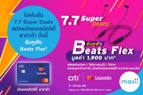 7.7 Super Deals!! สมัครบัตรเครดิตซิตี้ แกร็บ และ บัตรเครดิตซิตี้ ลาซาด้า วันนี้ รับหูฟัง Beats Flex* สุดคูล