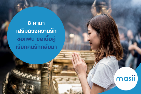 และนี่ก็คือ 8 คาถาเสริมดวงความรัก ขอแฟน ขอเนื้อคู่ เรียกคนรักกลับมา ที่ masii นำมาฝากกัน ใครที่ต้องการขอพรด้านความรักก็สามารถนำไปใช้กันได้เลย แต่ทั้งนี้ก็เป็นเพียงความเชื่อส่วนบุคคล อย่างไรก็ตามเราควรใส่ใจคนรอบข้างให้มากๆ ไม่ว่าจะเป็นครอบครัว เพื่อนฝูง หรือคนรัก ซึ่งในวันวาเลนไทน์นี้ นอกจากของขวัญวาเลนไทน์น่ารักๆ แล้ว การซื้อประกันต่างๆ ให้คนที่เรารักก็เป็นของขวัญที่ดีเช่นกัน เช่น ซื้อประกันภัยรถยนต์ ประกันสุขภาพ ประกันอุบัติเหตุส่วนบุคคล เป็นต้น