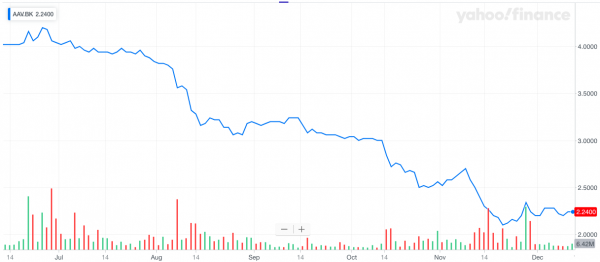 Stock values for Asia Aviation Public Company Limited didn’t experience much change during the trading day. Shares of SET: AAV, closed the Friday December 13, 2019 trading session at 2.24 THB per share, same as the close at previous trading session.