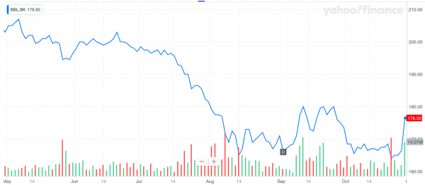 It was a positive trading day for Bangkok Bank Public Company Limited. Shareholders of SET: BBL, saw positive gains during the Wednesday October 30, 2019 trading session of 6.01%, finishing out the day at 176.5 THB per share. Shares rose 10.0 THB per share from the last close at 166.5 THB per share.