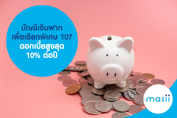 เปิดบัญชีธนาคารที่ไหนดี ที่ได้ดอกเบี้ยสูง Masii แนะนำ บัญชีเงินฝากเผื่อเรียกพิเศษ 107 ธนาคารออมสิน ที่มีระยะเวลาฝากเพียง 107 วัน ก็ได้รับดอกเบี้ยสูงสุด 10% ต่อปี ซึ่งสิทธิพิเศษแบบนี้มีให้สมัครกันได้ที่งาน Money Expo 2020 ณ อาคารชาเลนเจอร์ 1-2 อิมแพ็คเมืองทองธานี ระหว่างวันที่ 22-25 ตุลาคม 2563