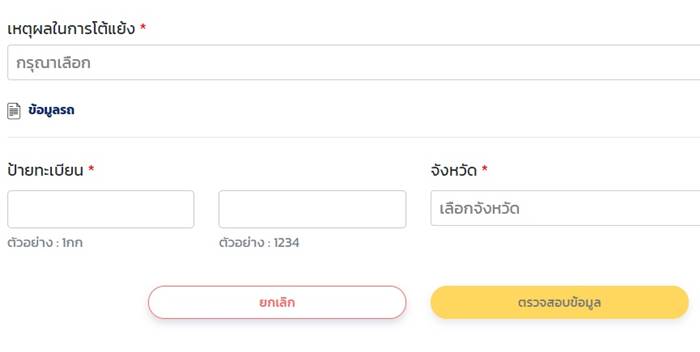 3. กรอกข้อมูลของท่านตามจริง เช่น ทะเบียนรถ, เหตุผลในการโต้แย้ง