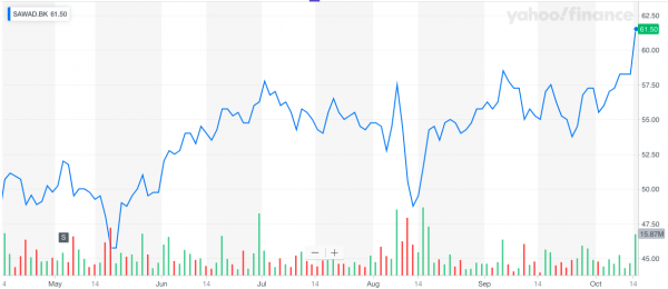 Srisawad Corporation Public Company Limited share close up: October 15, 2019 trading