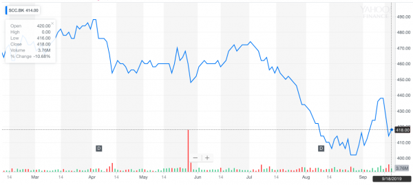 The Siam Cement Public Company Limited share close up: September 18, 2019 trading